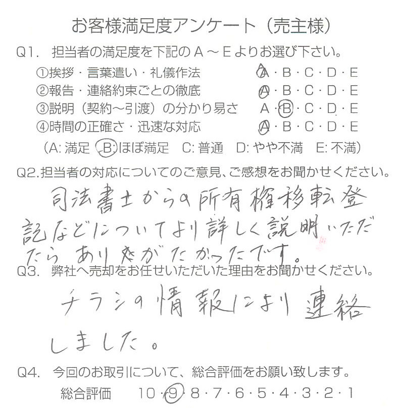 首都圏の不動産|朝日リビング > お客様の声一覧 > 物件をご売却頂きました:S.O様